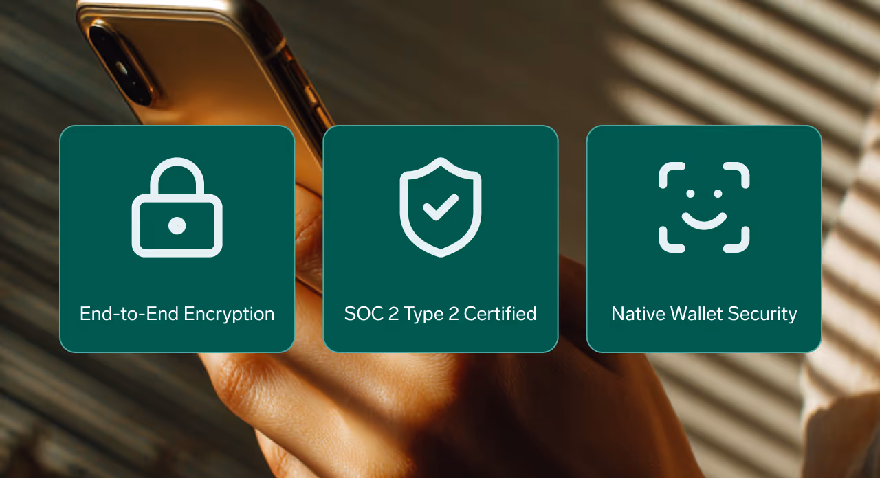 Wallet passes use device-level encryption and biometrics. Badge adds SOC 2–certified, GDPR-compliant infrastructure built for banks.