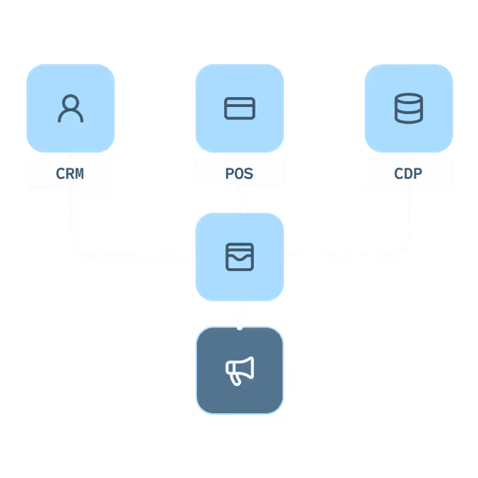 Sync loyalty data with your POS, CRM, and CDP so balances, offers, and member status stay consistent everywhere.