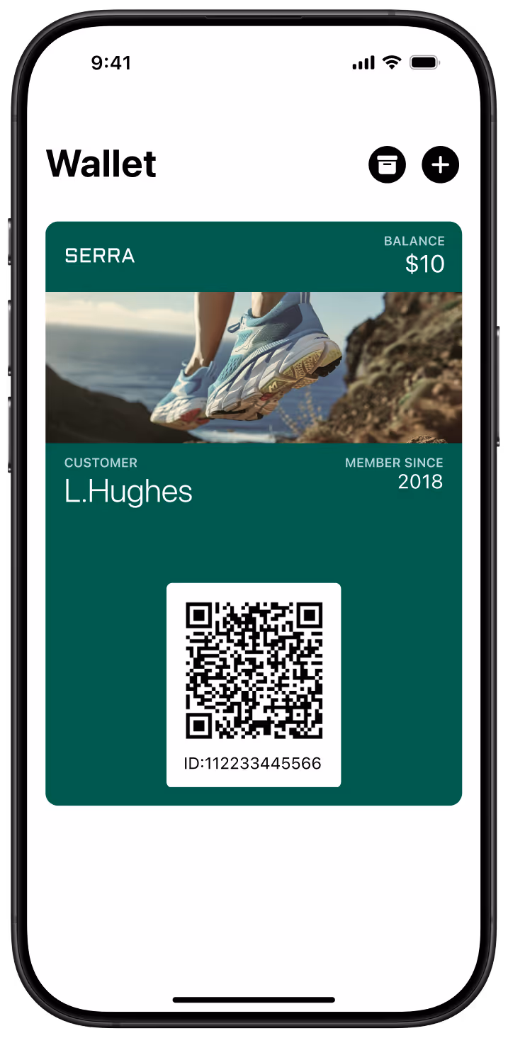 Loyalty cards live beside payment cards in Apple and Google Wallet, staying visible and easy to access at checkout.
